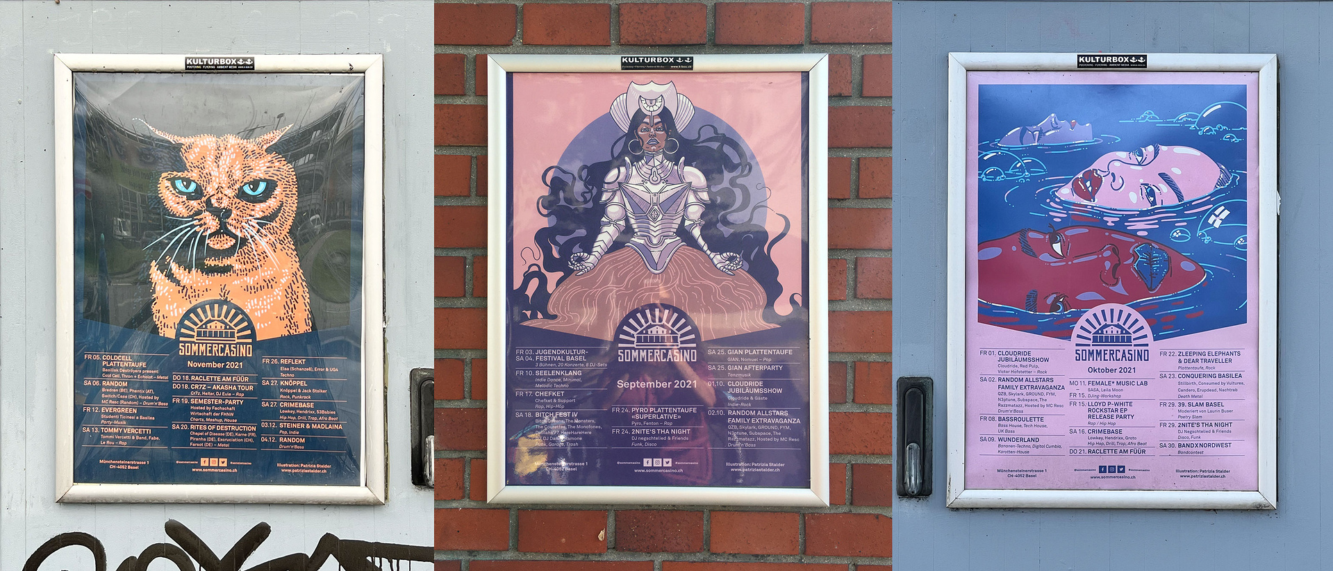 Das Plakatkonzept vom Sommercasino sieht vor, alle drei Monate eine/n andere/n Künstler:in für ihre Plakatillustrationen zu betrauen. Für September bis November 2021 wurde ich angefragt und stellte diese drei Illustrationen zur Verfügung. Diese sind im Rahmen der Challenge "Inktober 2020" entstanden.
